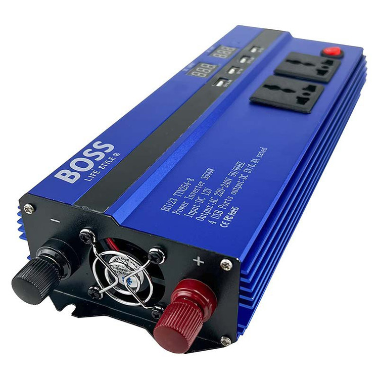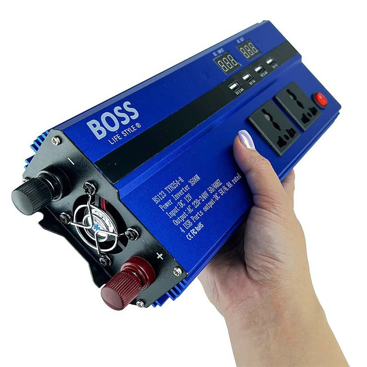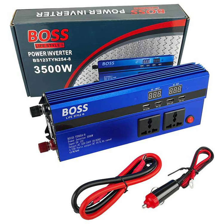خودرو BOOS از سری مبدلهای ولتاژ باطری به برق شهری می باشند که در هنگام سفر یا قطعی برق ، یاری رسان خانه و کسب و کار شما در استفاده از تمامی وسایل خانگی و صنعتی می باشند. وظیفه اصلی این مبدل، تبدیل برق جریان DC به برق جریان AC می باشد. در اغلب موارد دامنه ولتاژ جریان مستقیم پایین و دامنه ولتاژ جریان متناوب در حدود برق شهری یا 220 ولت است. به این دستگاه، راه انداز نرم موتور نیز می گویند. این محصول دارای خروجی ثابت 220 ولت با فرکانس 50 هرتز به صورت دائم کار می باشد(حتی در شرایط بار کامل). این مبدل دارای حفاظت چهارگانه در صورت بروز افزایش ولتاژ ،کاهش ولتاژ ، افزایش نامتعارف توان خروجی و نیز افزایش دما می باشد. توان نامی ذکر شده توان پیک استارت برای لوازم موتوری بوده و بهصورت دایم کار تا توان 3500 وات در این سری در دسترس میباشد. برخی ویژگی های بارز این مبدل، عبارت است از داری بدنه فلزی سبک و مستحکم از جنس آلومنیوم به جهت سهولت در استفاده در حالت سیار ،دارای سیستم خنککننده اتوماتیک، دارای پریز چندکاره خروجی، دارای کلید صفر و یک جهت قطع اضطراری از روی دستگاه، حفاظت در برابر اضافه جریان، دارای محافظ دما، دارای قطع کن خودکار در صورت کاهش ظرفیت باطری و در پایان مجهز به قطع کن خودکار در صورت افزایش سطح ولتاژ باطری است تا از آسیب های احتمالی به دستگاه های متصل به آن جلوگیری نماید.