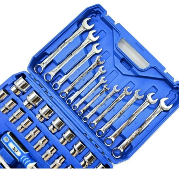 سایر توضیحات ✔️ کیفیت متفاوت ✔️ آبکاری عالی ✔️ درایو 1/2 ✔️ دارای 19 عدد بکس درایو 1/2 ( سایزهای: 8، 9، 10، 11، 12، 13، 14، 15، 16، 17، 18، 19، 20، 21، 22، 24، 27، 30 و 32) ✔️دارای 12 عدد آچار یکسر رینگ (سایزهای : 8، 9، 10، 11، 12، 13، 14، 15، 16، 17 ، 18 ، 19) ✔️ دارای جغجغه ضامن دار کله گاوی و قدرتمند ✔️ دارای دسته بکس کشویی دو کاره ✔️ کمک بکس 20 سانت ✔️ به همراه رابط بکس تاشو 1/2 ✔️ دارای 2 عدد بکس شمع 16 و 21