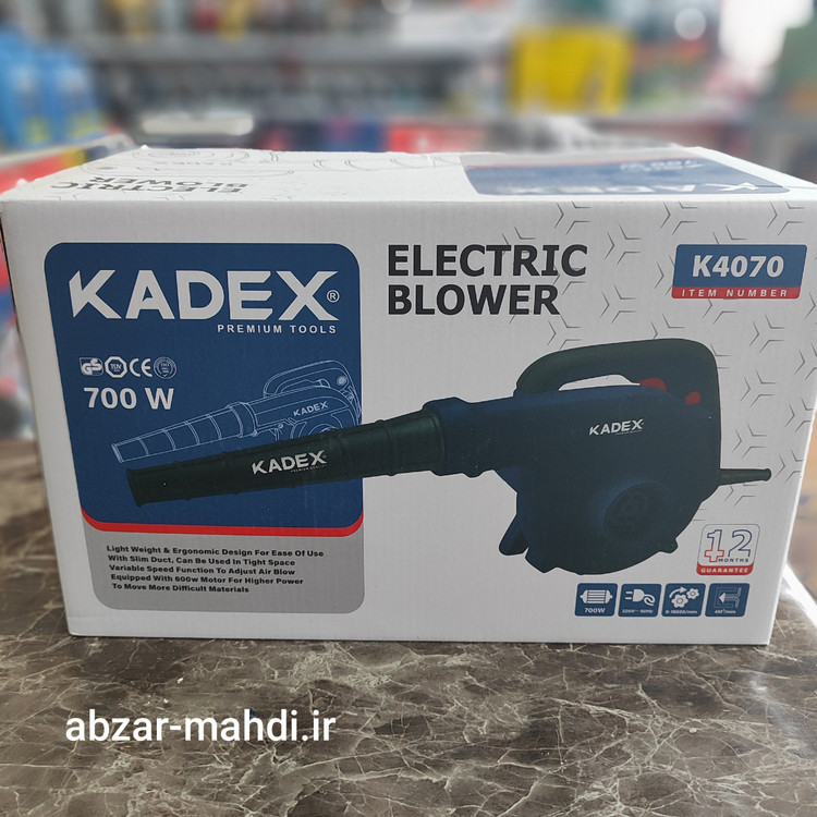 بلوور برقی وسیلهای جهت دمش هوا با قدرت بالا است. این دستگاه عمدتا جهت پاکسازی محیطهای مختلف استفاده بسیار بالایی دارد. بلوور برقی کادکس مدل K4070 قابلیت چرخش فن از 0 دور در دقیقه تا 16000 دور در دقیقه را دارد تا هوا را با سرعت بالا به میزان 4 متر مکعب در دقیقه بدمد. این دستگاه دارای قدرت 700 وات بوده تا عملیات دمندگی به راحتی و بدون فشار به دستگاه انجام شود. همچنین میتوان از این دستگاه جهت مکش نیز استفاده کرد. مهمترین ویژگی و وجه تمایز این دستگاه، وجود دیمر (کلید تغییر سرعت دمنده گی) روی خود بدنه است تا کاربر حین کار با این دستگاه به راحتی میزان دمش هوا را تنظیم کند و نیازی به خاموش کردن دستگاه جهت تنظیم مقدار دمش هوا نباشد. در مسیر دمش این دستگاه میتوان از لوله لاستیکی این دستگاه که داخل بسته بندی آن وجود دارد استفاده کرد تا دمش هوا متمرکزتر انجام شود و همچنین دستگاه دورتر قرار گیرد تا گرد و غبار نزدیک به کاربر نشود. این بلوور (دمنده/مکنده) دارای کلید قفل کن بوده تا در هنگام کار برای مدت طولانی، کاربر این کلید را فشار داده و بطور طولانی و مداوم از این دستگاه استفاده کند. تمامی مراحل ساخت موتور این دستگاه از قبیل لاکگیری، بالانس، سیم پیچی و... در آرمیچر و بالشتک این دستگاه با استفاده از دستگاههای تمام اتوماتیک مطابق با آخرین فناوری روز دنیا تولید شده تا عمر مفید دستگاه به حداکثر برسد. به علت دور بالای این دستگاه از بلبرینگ با کیفیت و تقویت شده در این دستگاه استفاده شده است. بدنه این دستگاه دارای طراحی ارگونومیک جهت خوشدستی و راحتی کاربر در حین کار طراحی شده و همچنی دارای عایق دوبل و از جنس PA6+GF30 که بهترین مواد جهت ساخت بدنه ابزار آلات برقی بوده، استفاده شده است. این دستگاه دارای کیسه جمع کننده گرد و غبار جهت جمع آوری گرد و غبار نیز است .