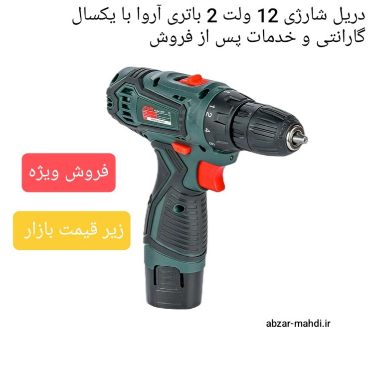 دریل شارژی 12 ولت 2 باتری آروا مدل 5970 با یکسال گارانتی