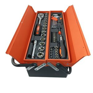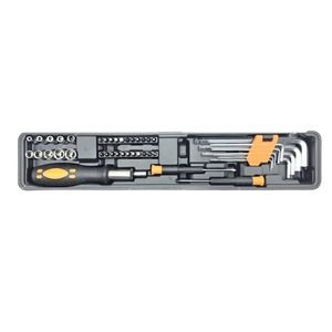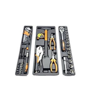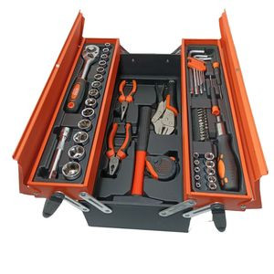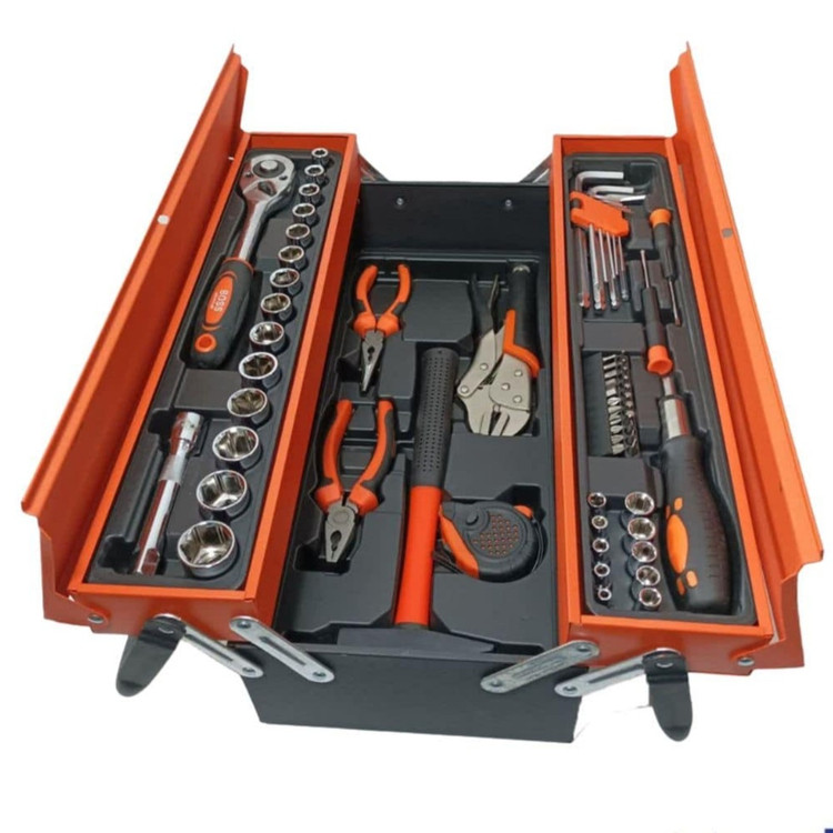 دارای : انبردست و دمباریک،۲۲ عدد بکس نوک پیچ گوشتی،یک سری آلن ته گرد ۱.۵ تا ۱۲ میلیمتر،یک عدد متر ۳ متری، انبر قفلی، چکش و ....به همراه کیف حمل فلزی اتوماتیک کیفیت بالا