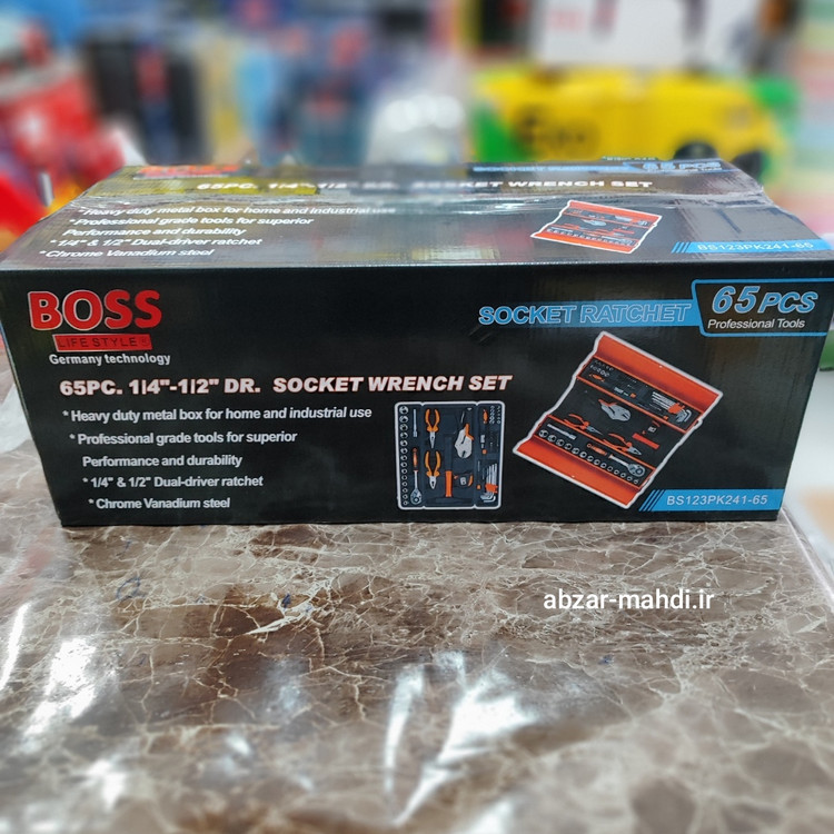 این مجموعه 65 پارچه بسیار نفیس و باکیفیت از برند خوشنام BOSS: از تولیدات درجه یک کشور چین است که به همراه یک جعبه ابزار فلزی مستحکم و مقاوم عرضه میشود. این محصول برخلاف جعبههای پلاستیکی یا کیفهای پارچهای عرضهشده برای بسیاری از مجموعههای ابزار، دارای عمری طولانی بوده و سالیان سال میتوانید ابزارهای خود را در این جعبه قرار دهید. این جعبه دارای 2 طبقه بوده و با مکانیزم پلکانی از وسط باز میشود. دستههای دوگانه این جعبه نیز از فلز ساخته شده است