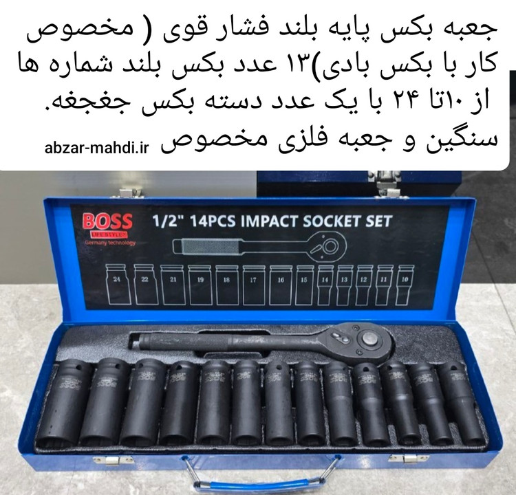 ✔ دارای ۱۲ عدد بکس( سایزهای: ۸، ۱۰، ۱۱، ۱۲، ۱۳، ۱۴، ۱۷، ۱۸، ۱۹، ۲۱، ۲۲، ۲۴)
