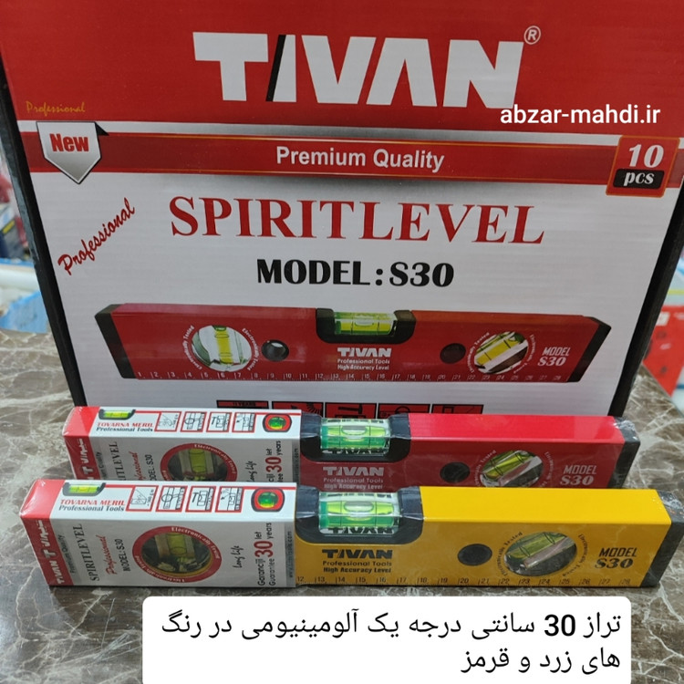 تراز بنایی مدل S30 تیوان ضد ضربه بوده و در دو رنگ زرد و قرمز تولید و عرضه میشود .