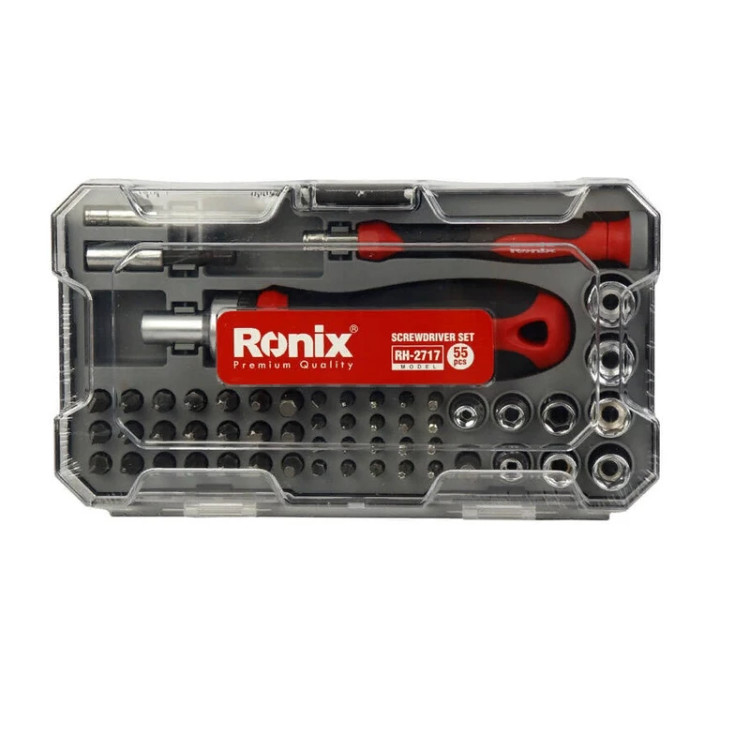 ست 56 عددی سری بیت و بکس رونیکس مدل RH-2717، مجموعه از یک کیت کامل حاوی سریهای پیچ گوشتی و بکس مختلف است تا با کمک آن بتوانید به راحتی قطعات مختلف را تعمیر کنید.