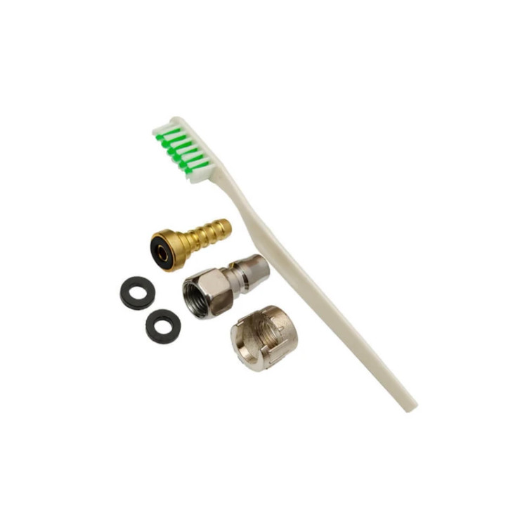 یک عدد مخزن پلاستیکی از جنس پی وی سی مستحکم یک عدد مسواک جهت شست و شو مهره و دنباله اتصال به شلنگ باد دنباله اتصال کوپلینگی به شلنگ دفترچه راهنما