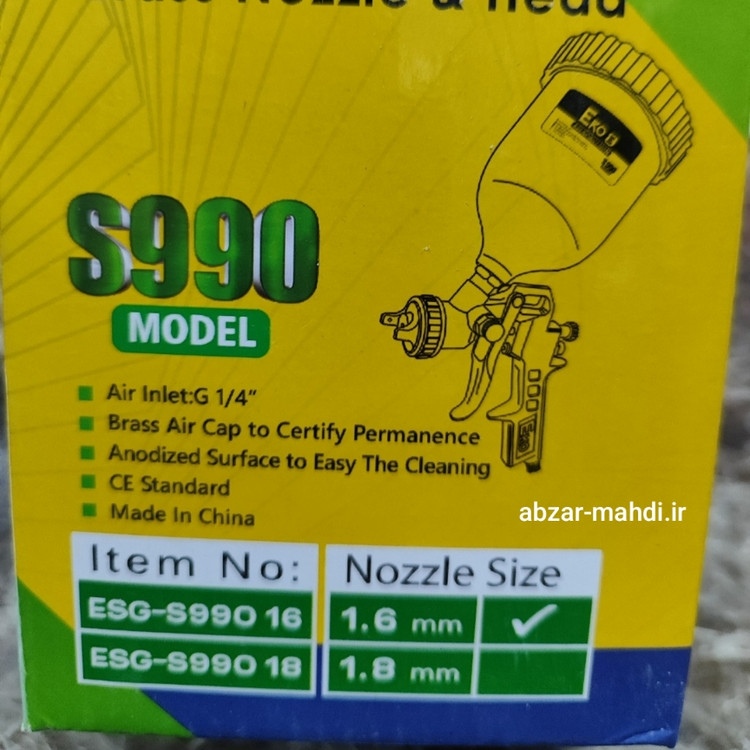 پیستوله رنگ پاش دو تنظیم اکو نازل ۱/۶ کاسه پلاستیکی مدلS990 مستر