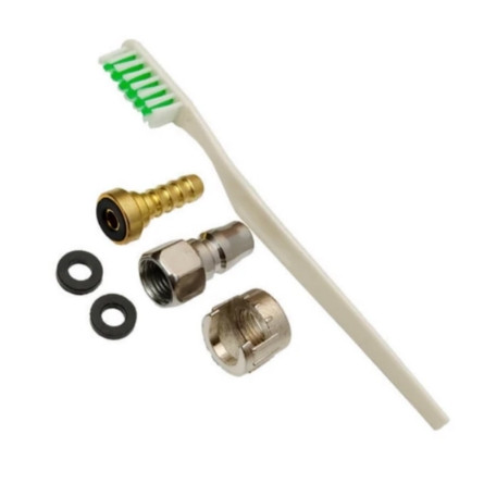 یک عدد مخزن پلاستیکی از جنس پی وی سی مستحکم یک عدد مسواک جهت شست و شو مهره و دنباله اتصال به شلنگ باد دنباله اتصال کوپلینگی به شلنگ دفترچه راهنما