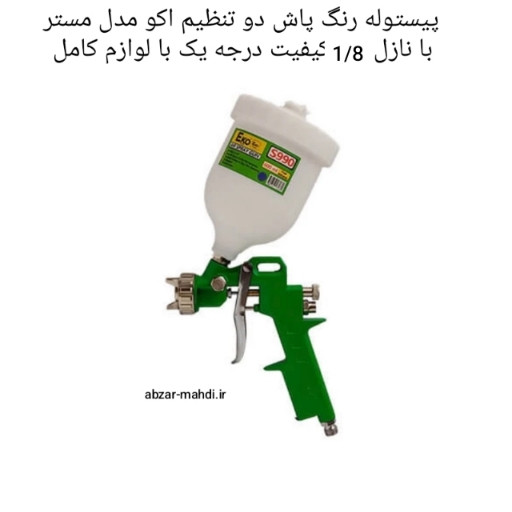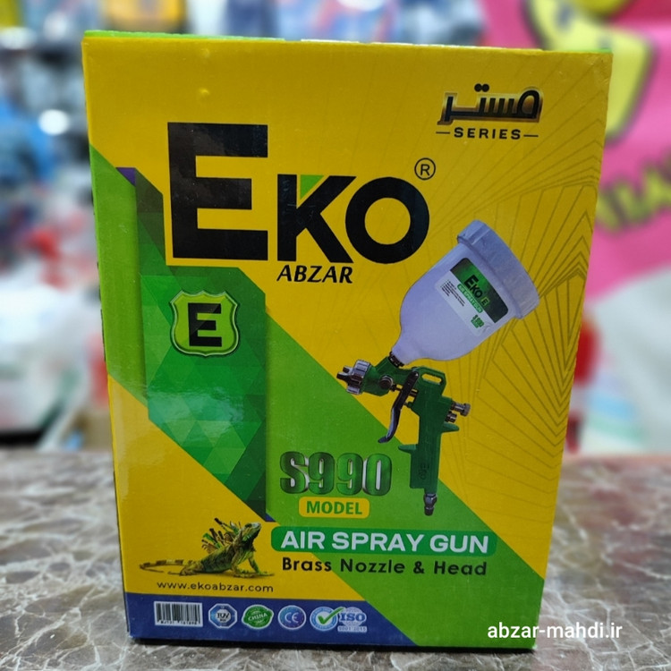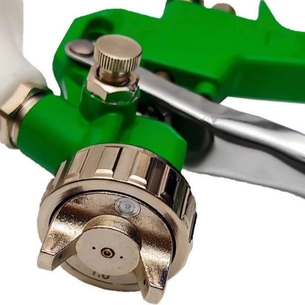 بدنه از جنس برنج و کاسه از پی وی سی سوزن ها از جنس استیل ضد زنگ دارای دسته با طراحی ارگونومیک نازل و کلاهک های تمام برنجی پیچ تنظیم پهنای پاشش رنگ موقعیت مخزن رو