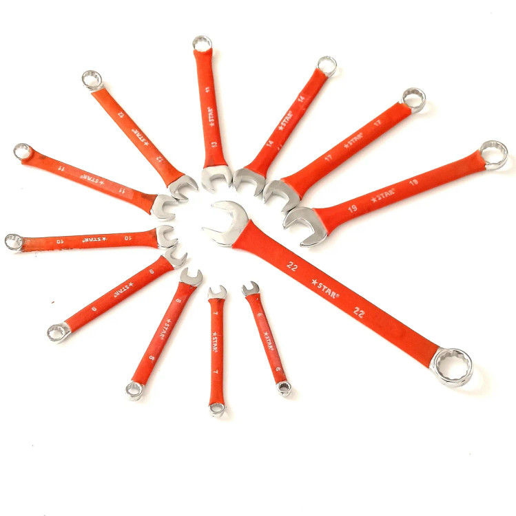 این آچارها از جنس کروم و وانادیوم ساخته شده و دارای کیفیت مناسبی برای کارهای نیمه صنعتی میاشد این مجموعه آچار در داخل یک عدد کیف اچار باکیفیت برای سهولت جابجایی قرار داده شده ک اچارها شامل شماره های 6_۷_۸_۹_۱٠_۱۱_۱۲_۱۳_۱۴_۱۷_۱۹_۲۲ می باشد ک جزو اچار های پر کاربرد میباشد کیف این مجموعه آچار بصورت لقمه ای جمع و بسته بندی میشود ک برای جا دادن در داخل جعبه ابزار فضای بسیار کمی را اشغال میکند