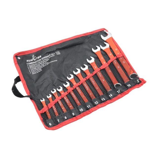 مجموعه آچار 12 عددی یکسر رینگ یکسر تخت کیفی روکشدار هانتر جنس کروم وانادیوم