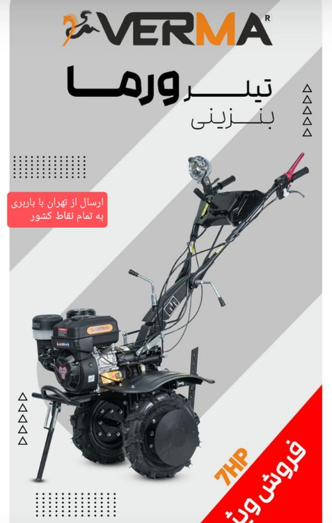 تیلر هفت اسب ورما از جمله پر فروشترین تیلرهای بازار می باشد. دلیل این امر نیز قیمت مناسب در کنار کیفیت بالای این تیلر می باشد. تیلر ورما 7 اسب بنزینی بصورت گیربکسی کار میکند. این تیلر جمع و جور قابلیت مانور بالایی دارد و قدرت مناسبی را برای شخم زنی و خاکورزی در باغات و مزارع کوچک دارد. کندن چال کود و یا کندن دور درختان بیشترین کاربرد در زمینه باغداری این محصول می باشد. عمده ترین دلیل خرید تیلر زیر و رو کردن خاک در مکانهایی است که نیاز به بیل زنی دارند. کار بیل زنی 7 نفر مرد قدرتمند در یک ساعت در عرض ده دقیقه با تیلر قابل انجام است و راندمان بالایی برای کسانی دارد که نیاز به زیر و رو کردن خاک دارند.