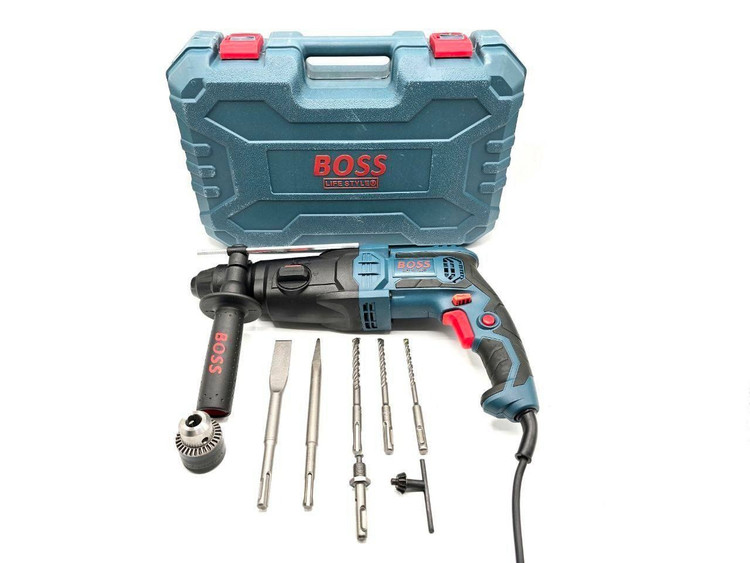 دریل بتن کن سه کاره باس مدلBS26SRE -OTبا موتور فوقالعاده قدرتمند 2200 واتی خود، بافراهم کردن دورموتوری معادل 1100 دور در دقیقه و نرخ ضربه نزدیک به 4000 ضربه بر دقیقه در حالت آزاد بدون هیچ سختی قادر به ایجاد حفره در سطوح فلز، چوب و بتن به ترتیب در اعماق 13، 30 و 26 سانتی می باشد.