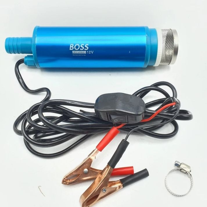 پمپ گازوئیل کش با برق 12 ولت (برق باطری خودرو ها) کار می کند. این پمپ میتواند از داخل مخزن یا باک ماشین آلات (بنزین ، گازوییل، روغن، کروزنو، پارافین، روغن هیدرولیک و سایر روغن ها تا 15 سانتیمتر) سوخت کشی انجام دهد. این پمپ ها می توانند از ارتفاع 5 متری مکش کرده و با قدرت بسیار بالا تا 10 متر ارتفاع سوخت رسانی انجام دهد.از ویژگی های مهم این پمپ ها سرعت سوخت کشی است. در واقع به علت نیروی خوب موتور این پمپ ها، به راحتی می توان انتقال را انجام داد. در واقع به علت نیروی بالای موتور پمپ گازوئیل کش برقی ماشین آلات راهسازی، به راحتی می توان انتقال را انجام داد.پمپ تخلیه گازوئیل دارای انبرهای سوسماری شکل برای اتصال به برق باطری می باشد