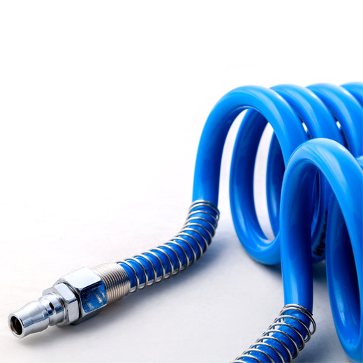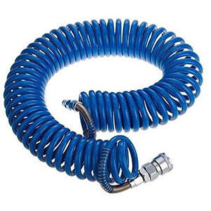 جنس این شلنگ از PU بوده و در مقابل گرما و ضربه بسیار مقاوم می باشد و کاربر می تواند با خیال راحت از این شلنگ برای انتقال باد به دستگاه استفاده کند. در دو انتهای این شلنگ دو عدد کوپلینگ نری و مادگی تعبیه شده است، همچنین این کوپلینگ ها توسط روکش فنری محافظت می شوند. این روکش فنری هم از جدا شدن کوپلینگ ها از دو سر شلنگ و هم از پارگی و صدمه رسیدن به خود شلنگ جلوگیری می کند.