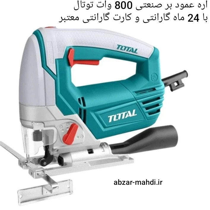 اره عمود بر توتال مدل TS2081006 برای برش چوب و فلزات مناسب است و با موتور قدرتمند 800 واتی خود قادر است سرعت بی باری برابر با 800 تا 3000 دور بر دقیقه را ایجاد کند. این تغییر سرعت با کمک یک دیمر پیچی کنترل سرعت 7 وضعیته که بر روی دسته قرار گرفته است انجام می گیرد. بازه توان این دستگاه در محدودهی بین 500 تا 1000 وات متغیر است.با این اره توتال میتوانید برشکاری بر روی چوب را تا عمق 100 میلی متر یا 4 اینچ، برشکاری بر روی آلومینیوم را تا 12 میلی متر یا 15/32 اینچ و برشکاری در فولاد را تا عمق 10 میلی متر یا 3/8 اینچ با دقت و سرعت خوب انجام دهید. این اره قادر است به صورت مورب و با زاویهی 45 درجه از هر طرف برشکاری انجام دهد و بدنهی آن از عایق دوبل ساخته شده است. برای حفظ محیط زیست نیز، اجزای این دستگاه از مواد قابل بازیافت ساخته شده است. از نکات خوب ساخت این دستگاه که شرکت سازنده در نظر گرفته این است که برای برش چوب ها با سختی های مختلف، یک کلید چهار زمانه با 4 حالت برش مختلف در نظر گرفته شده است که حرکت پاندولی تیغه را به اشکال مختلف تنظیم می کند.اره توتال مدل TS2081006 همچنین آزادی عمل بالایی در اختیار شما قرار خواهد داد به صورتی که میتوان صفحات را با زاویه 45 درجه و حتی کوچکتر نیز برش داد. همین موضوع باعث شده تا اره عمود بر پایه ثابت همه کارگاههای ساخت دکور و کابینت امدیاف، نجاری و... باشدبرای بهبود کارایی ، در قسمت انتهایی این اره، یک لولهی خروجی جمع کنندهی گرد و غبار قرار داده شده است تا ذرات را جمع آوری نماید و به بیرون منتقل نماید. از وسایل همراه این اره، میتوان به دو عدد زغال، ، آچار آلن شش گوش و پایهی قابل تنظیم آلومینیومی اره نام برد.طراحی این ابزار برقی به صورت ارگونومیک ساخته شده است و بر طبق استاندارد CE اروپا تولید شده است. .