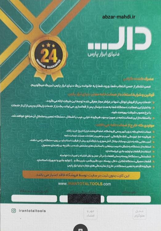24 ماه گارانتی با کارت گارانتی ثبتی در سایت رسمی شرکت توتال