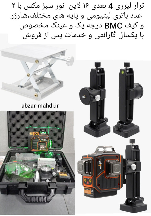 – دارای عینک: عینک مخصوص تراز لیزری کمک میکند تا کاربر خطوط را در شرایط نوری مختلف بهتر ببیند و دقت بیشتری داشته باشد.