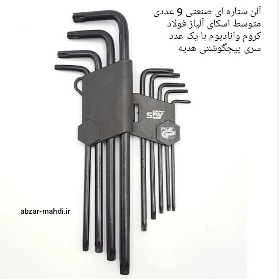 آچار آلن ستاره ای صنعتی 9 عددی متوسط اسکای مدل ST-1213B جنس کروم وانادیوم
