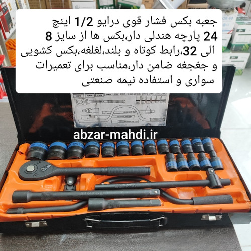 جعبه بکس ۲۴ پارچه هندلی دار فشار قوی ویژه  باس مدل۲۴PCS جنس کروم وانادیوم حک شدهناموجود